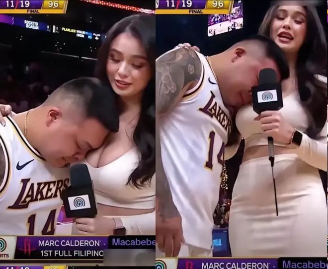 近日,一位洛杉磯湖人男球迷倚靠在美女記者懷里的照片意外走紅。照片背景是當(dāng)時(shí)湖人以96-119大比分輸球之后,這位男球迷在美女記者懷里痛哭。